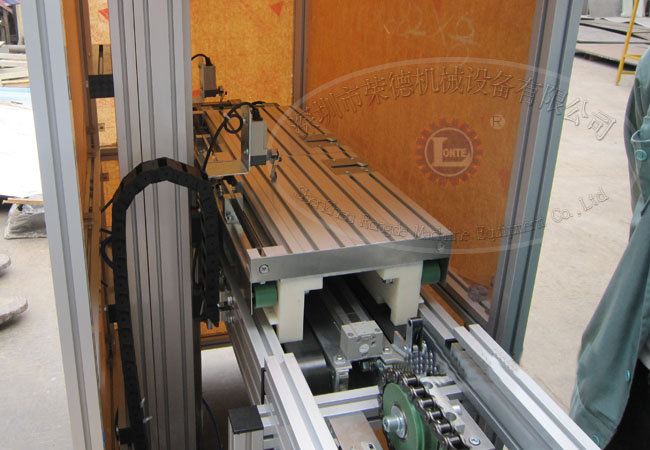 高鐵門自動裝配流水線技術(shù)優(yōu)勢:針對高鐵門驅(qū)動部分,尺寸長短不一且很沉重,不好定位,設(shè)計一套能自動流動工裝小車,小車采用一組帶手動離合驅(qū)動小車,一組被動小車,且產(chǎn)品放到主驅(qū)動小車,通過一個升降壓板壓緊產(chǎn)品的底板(可適應(yīng)2-6mm的底板),另一組被動小車依產(chǎn)品長度調(diào)到合適位置,由升降壓板壓緊定位好進(jìn)行產(chǎn)品組裝,組裝一部分后,由輸送帶送至下一站,進(jìn)行下一道工藝組裝,一共進(jìn)行9道工序組裝后,產(chǎn)品取下,工裝小車由提升機送至下層返回輸送帶,從另一頭起點提升循環(huán)使用。