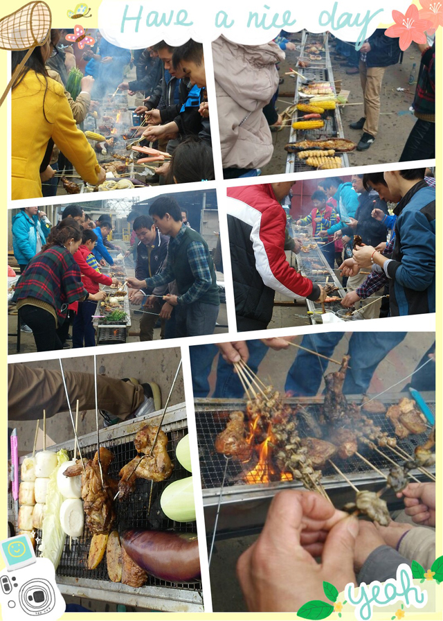 大家爬完山后,就立馬回到公司,不大一會(huì)兒,整個(gè)廠區(qū)內(nèi)炊煙裊裊,此時(shí)我們都是饑腸轆轆,迫不及待地圍在燒烤架,把早已想吃的食物放到架子上,霎時(shí)空氣中充滿了肉的香味。