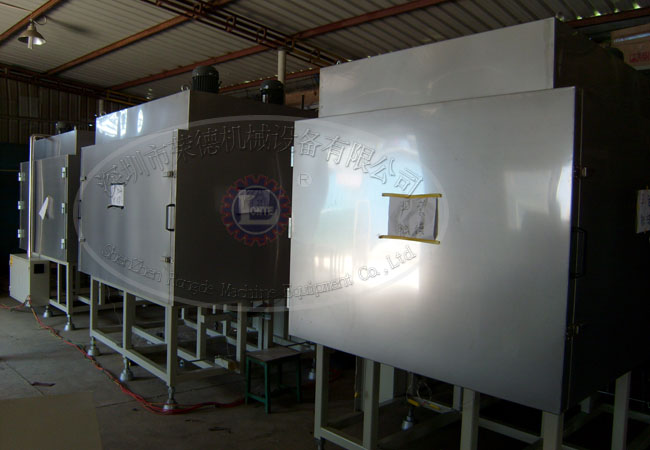 紫外光固化設備由光源、反射板、燈具、電源裝置、冷卻裝置、傳感器、工件輸送裝置、排氣換氣裝置、室體壁板及防紫外線照射擋簾等組成。中型工件的紫外光UV固化室一般為非標設備,根據(jù)產(chǎn)量、工藝要求、工件外形大小、輸送方式及速度等具體情況設計制造,小型工件的紫外光固化設備市場上有部分規(guī)格產(chǎn)品可供選購。